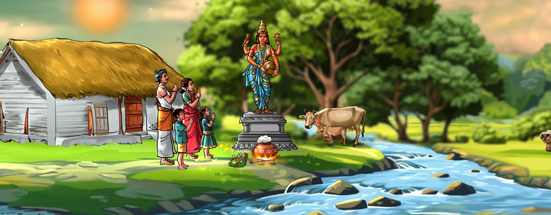After the harvest, the people of this land celebrate Pongal and offer their gratitude to the deities Kathiravan(Sun) and Kaviri Thaai(River Cauvery)